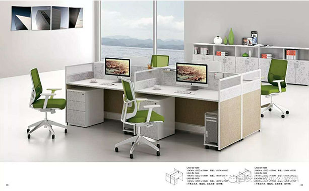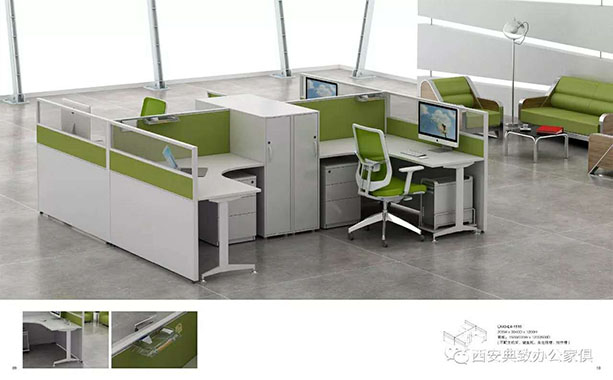 1:屏風工位辦公桌:將辦公之間通過屏風分隔成不同區域的辦公桌,一般是幾個拼接在一起。