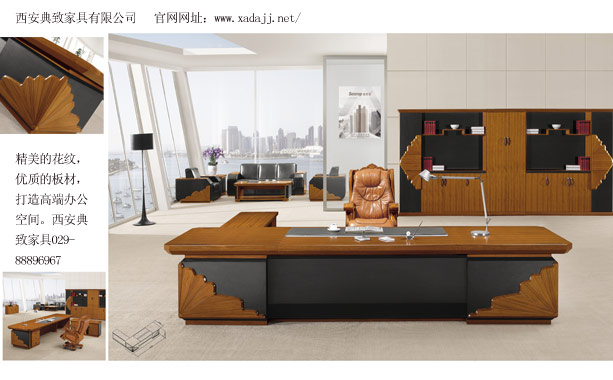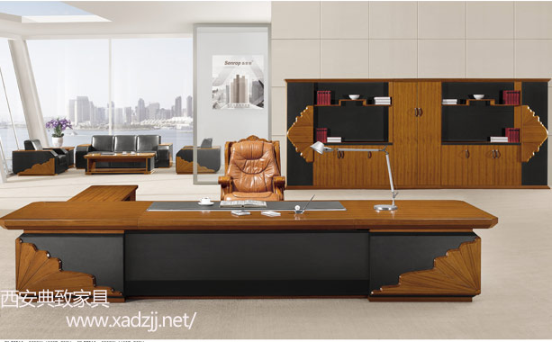 最新款高檔辦公桌-西安典致家具辦公桌,班臺是辦公桌中的VIP, 素來是辦公室中最有標志性家具,是決策者運籌帷幄的主裁臺,它不僅需要具備功能型,同時亦要具備公司對外表的形象。優質的實木材料和真皮的創造性結合,就是這種形象的完美體現。