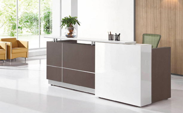 隨著現(xiàn)代科技的不斷發(fā)展,前臺(tái)工作所用的辦公桌也越來越有型,不再只是單一的用于工作,還有很強(qiáng)的裝飾性能。典致小編為大家介紹幾款時(shí)尚潮流的前臺(tái)辦公桌,讓我們一起欣賞這兩款個(gè)性時(shí)尚的前臺(tái)辦公桌圖片吧!