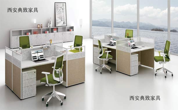 設計獨特的二人屏風工位,保證人員之間辦公的相對獨立性。此款屏風工位選用實木顆粒板為基材,結實耐用。