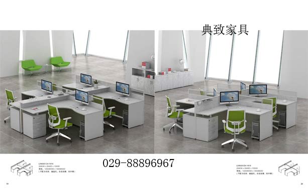 屏風工位的桌面,有直臺面,有L型臺面,西安典致家俱譚云講講,什么樣的房子擺放直臺面,什么樣大廳擺L型臺面,我們每個公司的行業都不同,比方做網絡公司的就的用直臺面,這個行業是需要多坐人員,每個人的桌面只有1.2米長,這個尺寸就足夠擺放一臺電腦和一部電話,就用40款屏風辦公工位,國營單位都是選擇L型臺面,他們的工作量大所以桌面尺寸是1.4米*1.5米的L型臺面,這款屏風工位是生產供貨給好多大公司。