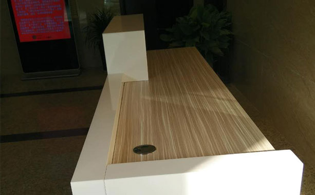 陜西信合曾與西安典致家具多次合作。這次定制的是一款時尚的前臺。