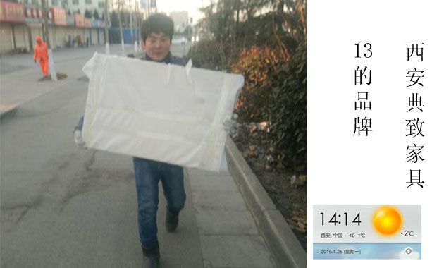 昨天接到胡家廟客戶的電話,要求上門更換家具,今天早上的時候,典致家具的員工A,于早上八點帶著客戶要的東西,前往車站,乘車去客戶要求的地方。今天的氣溫是-10到-1.可見天氣的惡略,走在上上的時候,寒風(fēng)吹打在身上,無比的刺骨,而我們西安典致的員工,即使天氣再嚴(yán)寒也阻擋不了前進(jìn)的步伐。