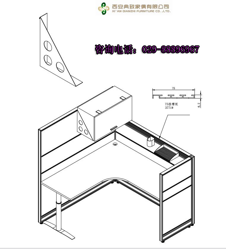 我們經常使用辦公家具,卻不知道辦公家具如何制作,生產。今天典致辦公家具小編就為大家解說一下吧!這是屏風辦公桌的掛曹示意圖。