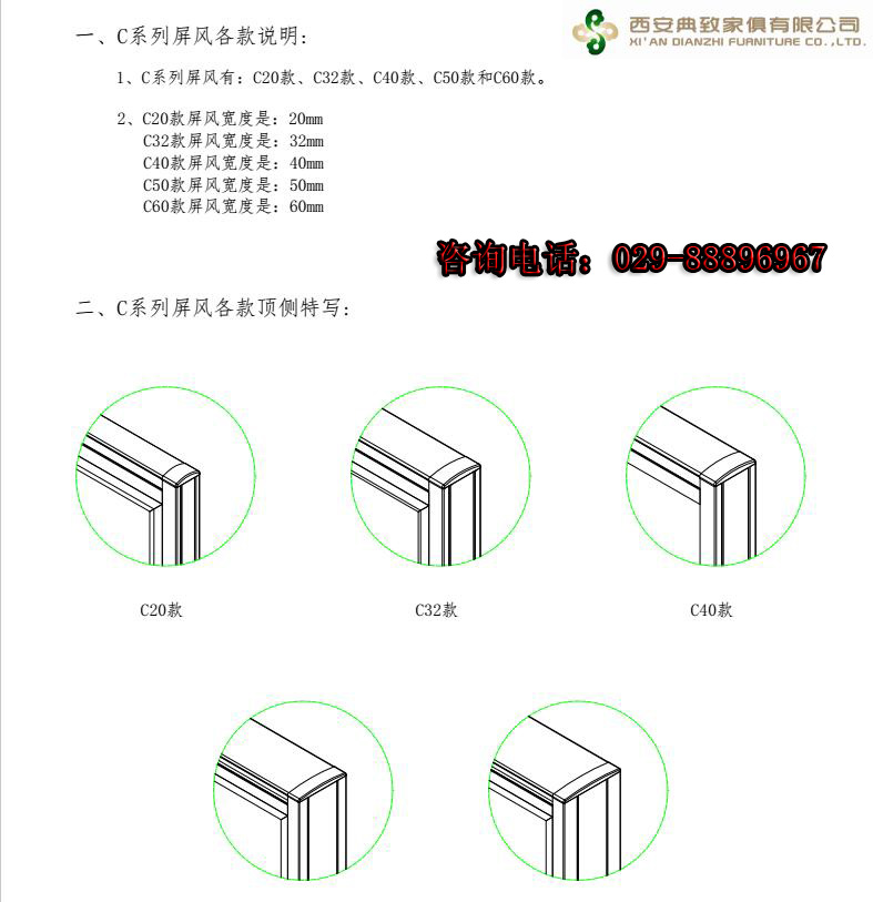 典致屏風辦公桌的頂角側面解說圖,這是針對每一款辦公家具定做的不同屏風頂角的。