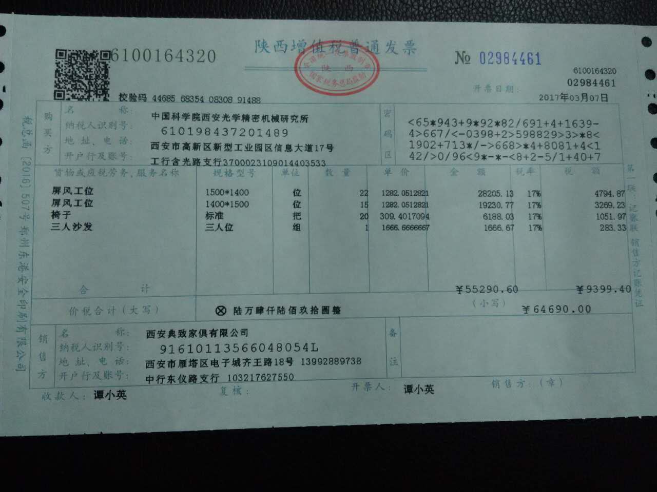 這是典致家具為中國科學(xué)院西安光學(xué)精密機(jī)械研究所開具增值稅專用發(fā)票。