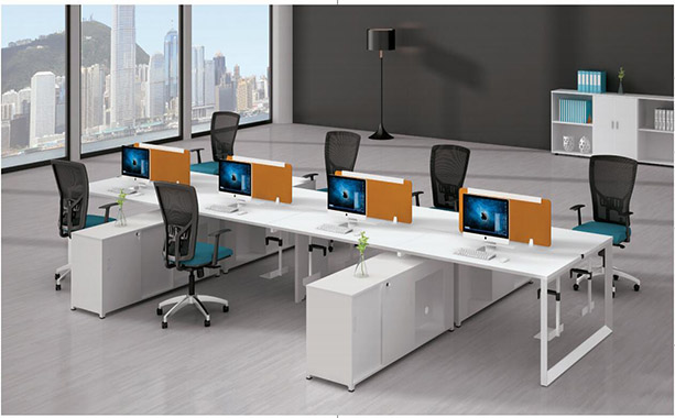 鋼架辦公桌M401豎排效果辦公相對獨(dú)立,互不打擾,桌前擋板可以更好的保護(hù)個(gè)人工作