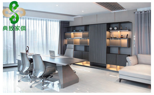 6、董事長辦公室的私人專屬室內空間設計充足表現了輕奢并不是寥寥幾筆線條,而是用“專而精”制造出獨有的。黑檀木飾面板造型藝術陳列柜組合精美的建筑立面造型設計,組成一套整潔無暇的輕奢管理體系,變成訪問者進入空間后視覺享受。